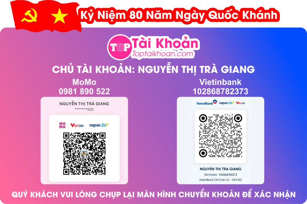 Hiện tại Top chỉ nhận thanh toán các đơn hàng qua tài khoản ngân hàng và MOMO.
